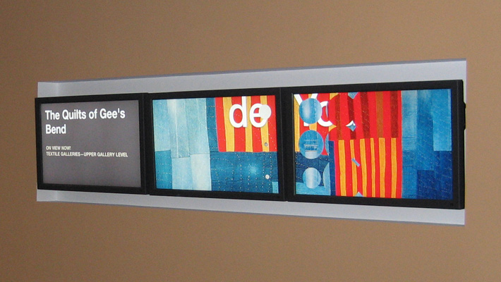 I was contracted by MediaTrope to design and program a dramatic XML and ActionScript based signage module. This module was integrated with Mediatrope's Sitebots Content Manager that was already in use as the museum's website content management.