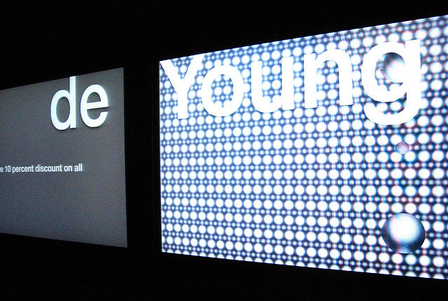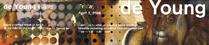 This module's programming was set up so non-technical staff could create new animations with simple content messaging and update the signage on a moment’s notice using Sitebots adminstration controls. Transition elements were designed to mimic the unique half-tone like architectural details of the de Young's building facade.